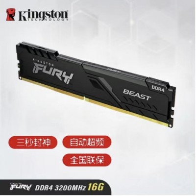 金士顿 野兽 内存条 16G 3200MHz 电竞游戏款 经济高效的升级可实现 2666MT/s 至 3733MT/s 的速度和 CL15-19 的延迟