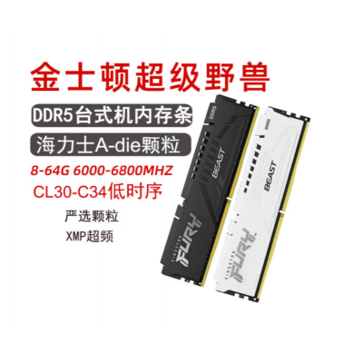 全部商品 > 内存 > 金士顿内存 > 金士顿超级野兽 DDR5 16G 6000MT/秒 C30 EXPO 台式机内存条 Beast超级野兽系列 骇客神条