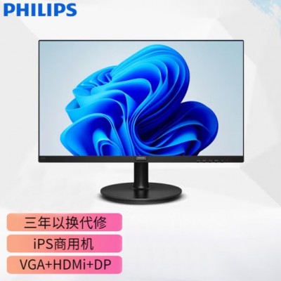 飞利浦(PHILIPS)商显 272S9 27英寸IPS显示器 三面微边框 75Hz 商用办公电脑监控屏 低蓝光爱眼不闪屏 黑色 广色域 VGA+HDMI+DP接口 支持壁挂