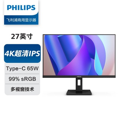 全部商品 > 显示器 > 飞利浦(商用)显示器 > 飞利浦(PHILIPS)-商显27B1U3900L 27英寸 4K显示器 IPS Type-C65W 内置音箱 低蓝光 旋转升降 PBP分屏 办公电脑显示屏