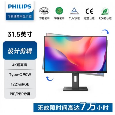 全部商品 > 显示器 > 飞利浦(商用)显示器 > 飞利浦(PHILIPS)-商显32B1U3900/93 商用电脑显示器 31.5英寸 4K 内置音响 低蓝光护眼 升降旋转 Type-C90W