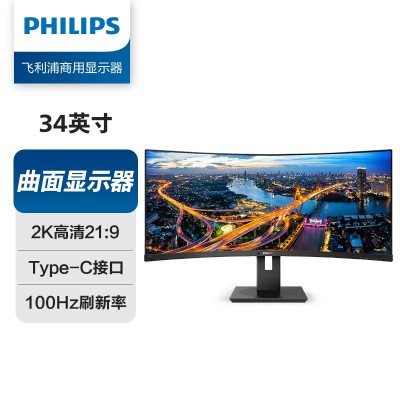 飞利浦(PHILIPS)-商显 346B1C 34英寸曲面1500R超宽21:9带鱼屏2K显示器100Hz内置音箱Type-C 90W办公商用屏PBP智能分屏KVM显示屏 内置音响电脑显示屏