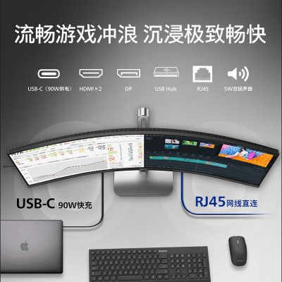 飞利浦(PHILIPS)-商显49B2U5300C/9 49英寸 准4K 144Hz HDR400 TypeC90W 分屏 可壁挂 3年质保 商用