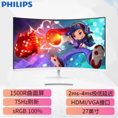 飞利浦(PHILIPS)271E1CSW 27英寸 办公 游戏电竞 曲面屏 1500R Low Blue MVA技术 窄边框 爱眼不闪屏