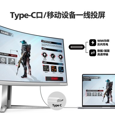 飞利浦(PHILIPS)34M2C8600 34英寸 WQHD/175 Hz,QD OLED, 3-FL, 3H(HDMI2.0)1DP(DP1.4)1USB-C(PD90W), HDR True