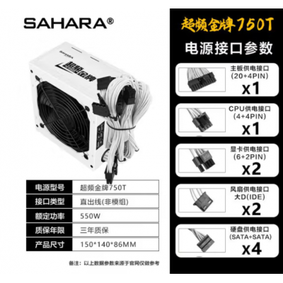 全部商品 > 电源 > 撒哈拉电源 > SAHARA 撒哈拉超频金牌750T白