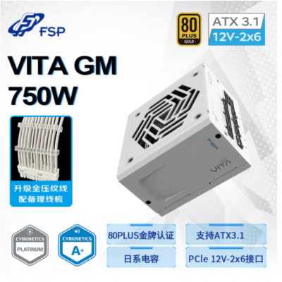 金牌全模组 全汉(FSP)VITA GM 750W雪装版电源(ATX3.1/PCle 5.1 12V-2x6接口/105℃日系电容/全压纹线)