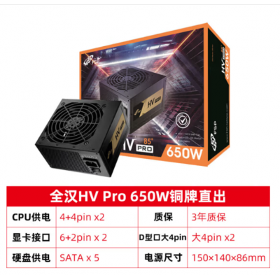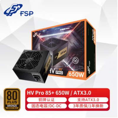 铜牌认证/ 全汉(FSP)额定650W HVpro650W/ATX3.0