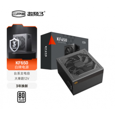 80Plus白牌 超频三(PCCOOLER)额定650W KF650 黑色 电脑电源 (主动式PFC/支持背线/大单路12V)