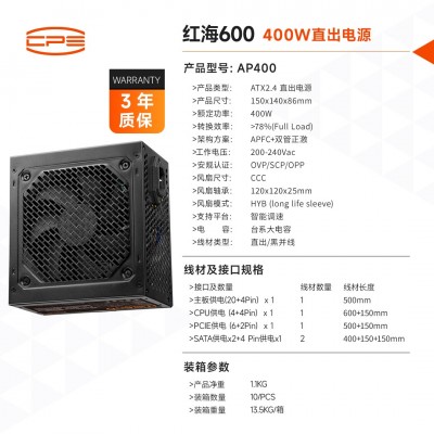 超频三 红海600 额定400W 峰值(500W)