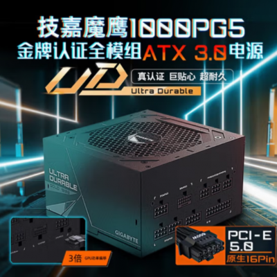 全部商品 > 电源 > 技嘉电源 > 金牌认证 技嘉魔鹰UD1000GM/ PG5 ATX3.0 PCIE5.0认证全模组台式机电源 UD 1000GM PG5