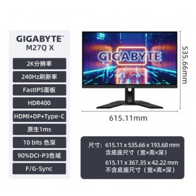 技嘉(GIGABYTE) 27英寸 2K IPS面板 HDR广色域 电竞游戏显示器 小金刚 高刷 直面屏 曲面屏 M27QX2.0/SSIPS/2K