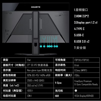 HPC HH27QI 27英寸 IPS 2560*1440 100Hz HDMI+DP+USB+内置音箱 直面无边框