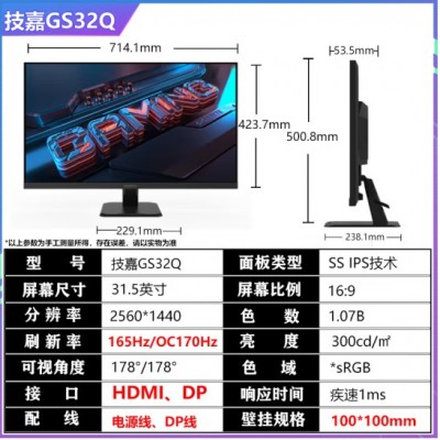 HPC HH27QPX 27英寸 IPS 2560*1440 180Hz HDMI+DP 直面无边框