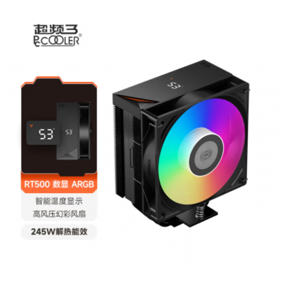 超频三(PCCOOLER)RT500 ARGB BK数显 CPU风冷散热器(5热管/温度显示/三角波浪鳍片/1700/AM5)