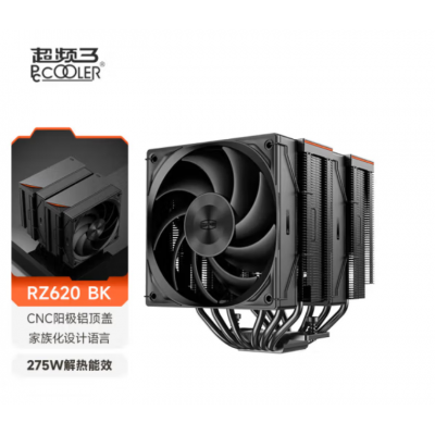 全部商品 > 散热/风扇/水冷 > 超频三 > 超频三(PCCOOLER)臻RZ620散热器CPU风扇双塔六热管温控1700多平台RT620P性能ARGB电脑LGA1851塔式风冷 RZ620 BK 黑色