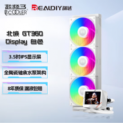 超频三(PCCOOLER)北境GT360 ARGB Display WH屏显一体式CPU水冷散热器/3.5吋液晶屏/自定义主题//支持1851/AM5