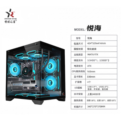 | 机箱 | 世纪之星悦海+棱镜4pro*7(黑白可选) |