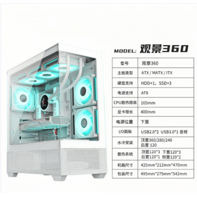 | 机箱 | 世纪之星观景360+棱镜6pro*6黑白可选 |