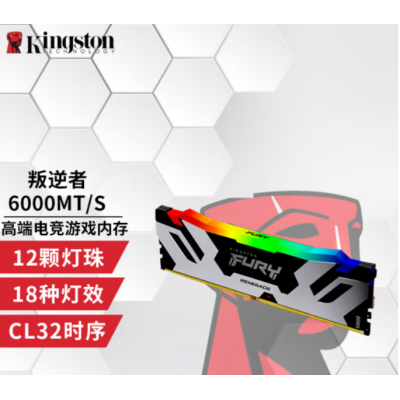 金士顿FURY DDR5 16G 6000MT/S 台式机内存条 Renegade叛逆者系列 骇客神条电竞内存条 叛逆者黑色RGB款