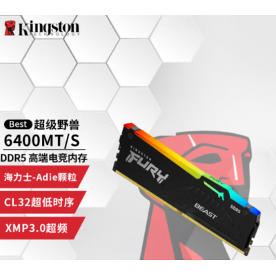 金士顿 Beast野兽系列骇客神条 16G 6400MT/S 台式机内存条 FURY 游戏电竞 支持XMP&EXPO 超级野兽6400 RGB海力士颗粒