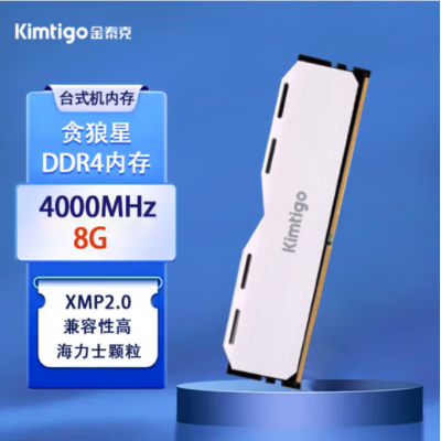 金泰克 DDR4 8GB 4000MHz 贪狼星系列 马甲条白色 严选原厂颗粒 稳定兼容