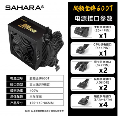 全部商品 > 电源 > 撒哈拉电源 > SAHARA 撒哈拉超频金牌600T黑 盒包/工包 可选