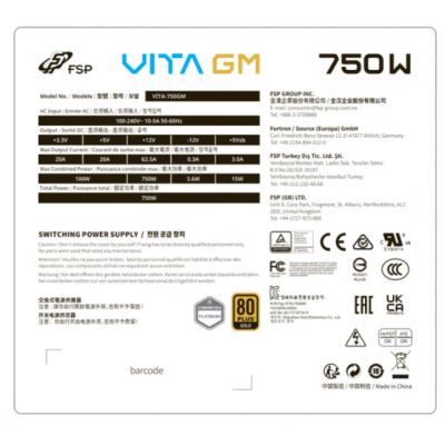 金牌全模组 全汉(FSP)VITA GM 750W雪装版电源(ATX3.1/PCle 5.1 12V-2x6接口/105℃日系电容/全压纹线)