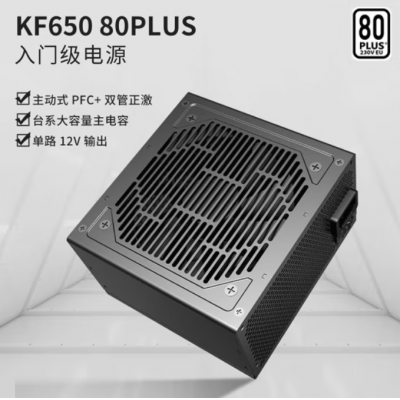 80Plus白牌 超频三(PCCOOLER)额定650W KF650 黑色 电脑电源 (主动式PFC/支持背线/大单路12V)